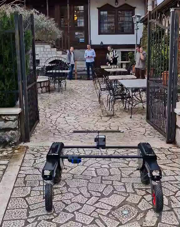 Testing of the first fully assembled prototype. After some debugging and a few tweaks, the manual control is fully operable with an option to switch between two gears. The laser following system works as expected in the laboratory conditions, and the work on stabilizing it’s behavior in the field is in the process.